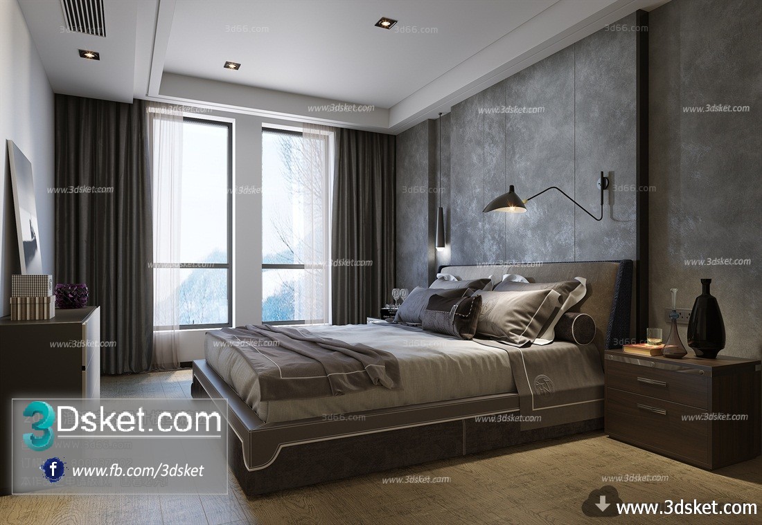 Model Details: 3D Interior Model BedRoom A035 Scene 3dsmax
